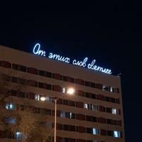 В Астрахани на крыше AZIMUTСити Отеля установили световую инсталляцию «От этих слов светлее», созданную художником Владимиром Абихом в рамках арт-резиденции «Номер с видом». Проект продолжает серию паблик-арт работ, которые современные художники создают при поддержке гостиничной сети AZIMUT Hotels в разных городах России.